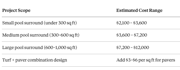 Here's a general cost framework for pool-area turf installations in the Fort Worth and Southlake market: